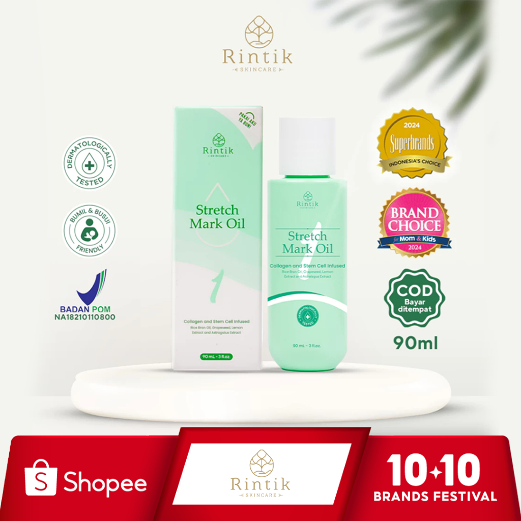 Rintik Skincare Stretch Mark - Pudarkan Stretchmark Selulit Bekas Luka mengandung Collagen & Stem Cell Infused 90ml