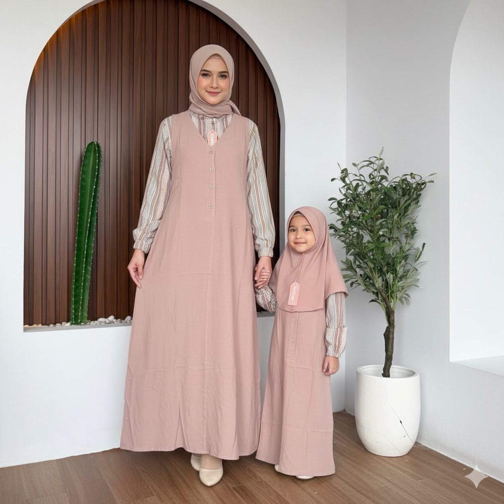 Setelan Overall Anak dan Ibu Baju Gamis Anak wanita Fashion Muslim Lengan Panjang Syar'i Katun