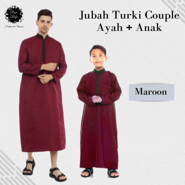 Gamis Pria Jubah Laki-laki bisa Couple Ayah Anak Lengan Panjang Kancing depan size M- XXL