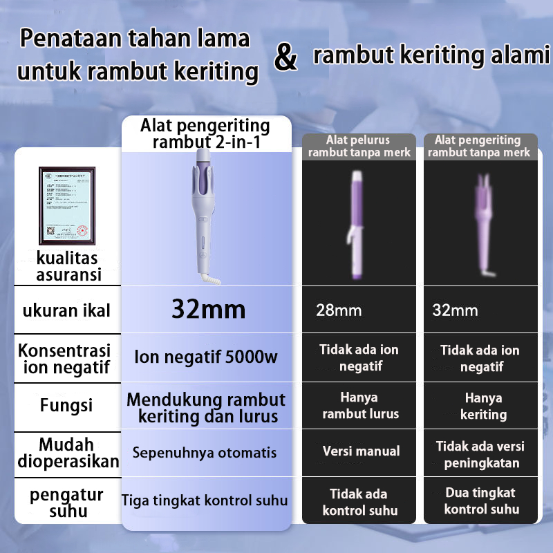 PRIBINRUIS 2in1 Catokan Curly Otomatis Ceramics 32mm Catokan Keriting Rambut Otomatis Lon Negatif Catokan Rambut Curly Rambut Panas Cepat Pengingat Nada Dering
