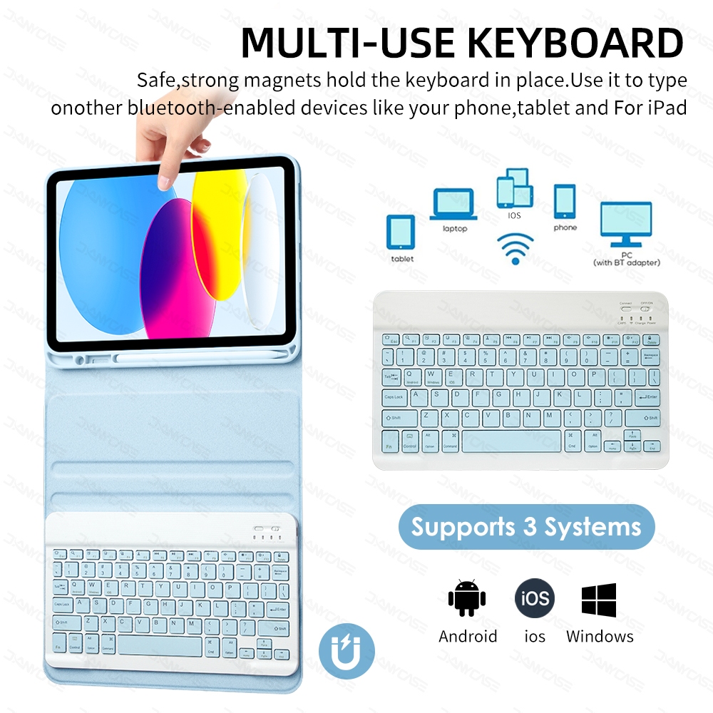 DANYCASE Case Keyboard iPad + Mouse - Cover Magnetik Slot Pencil Kompatibel iPad 10th Gen/11th A16 5/6 Gen 9.7" 7/8/9 Gen 10.2" Air 4/5 10.9" Air 11 m2 Pro 11 13
