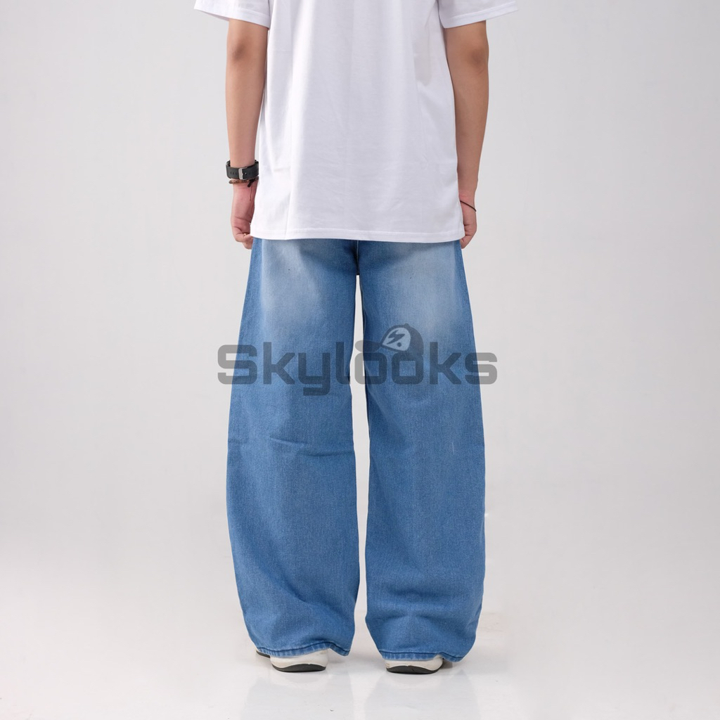 Unisex Celana Jeans Panjang Lebar bawah Korean Style Baggy Reguler Washed Fitt Pria dan Wanita