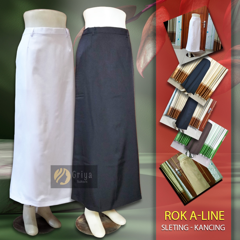 Rok Kerja Panjang Model A Line Size S M L XL XXL XXXL 5L, Rok Kuliah Hitam Putih Belt Sleting Jumbo