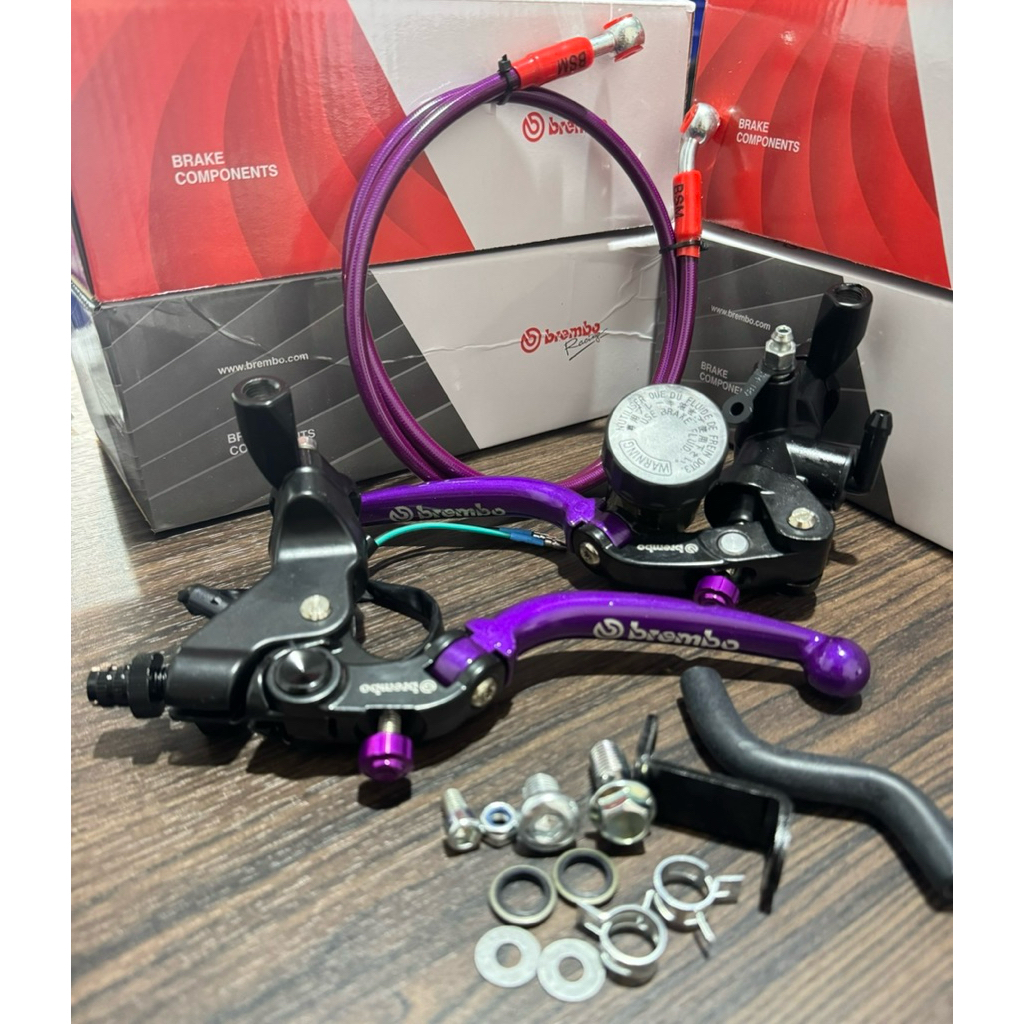 paket hemat kiri kanan rem master brem acosato s1 14mm plus selang rem 95cm universal