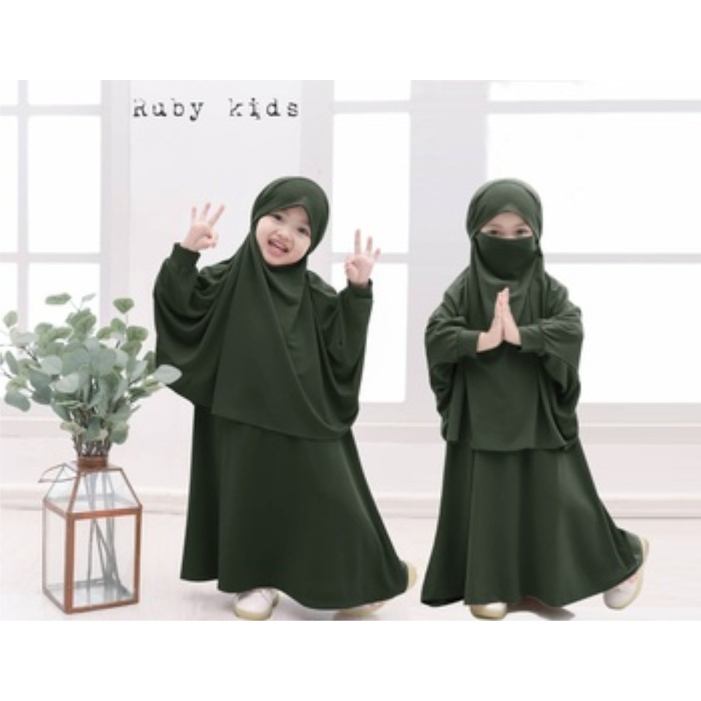 Baju Gamis Syar’i Jilbab Cadar Set Anak Perempuan Ruby Kids Usia 3-10 Tahun