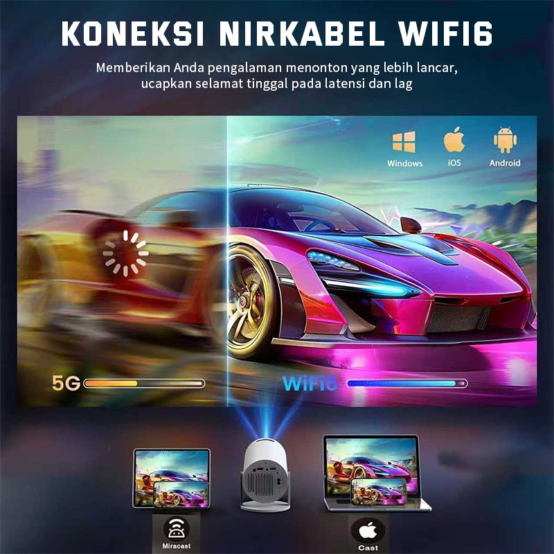 Proyektor HY300 Pro Mini Portabel WiFi6+Bluetooth, Dukungan 4K/1080P Android TV 13.0 Kualitas Gambar 4K Full HD Smart Projector