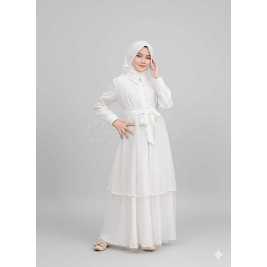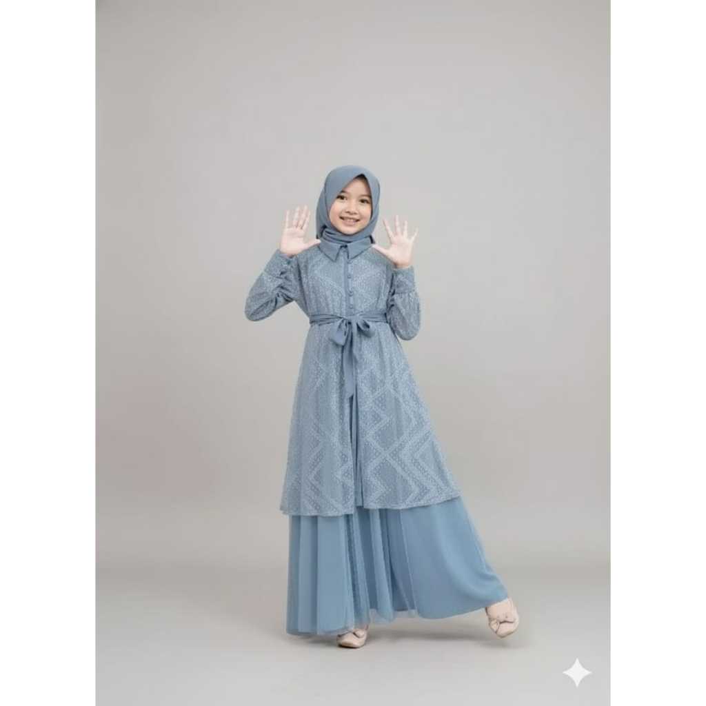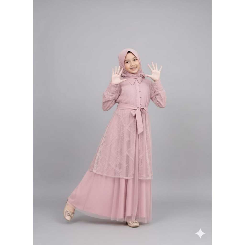 Gamis Muslim Anak Perempuan Usia 10-11-12-13-14-15 Tahun Padma Syari Kids Bahan Crinkle Airflow Mix Brukat