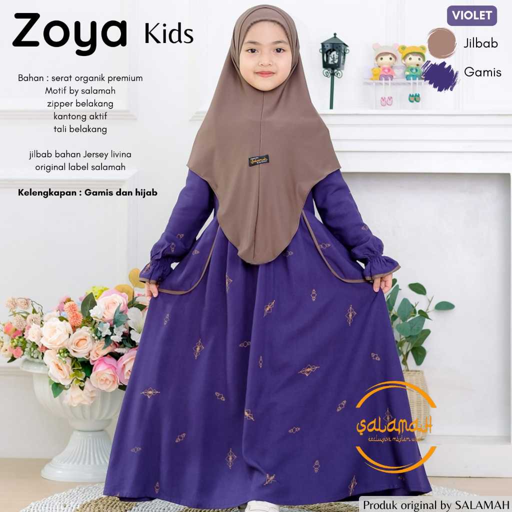 Gamis anak ZOYA KIDS Plus Jilbab| Motif by Salamah | usia 2 3 4 5 6 7 8 9 11 -15 tahun | by Salamah