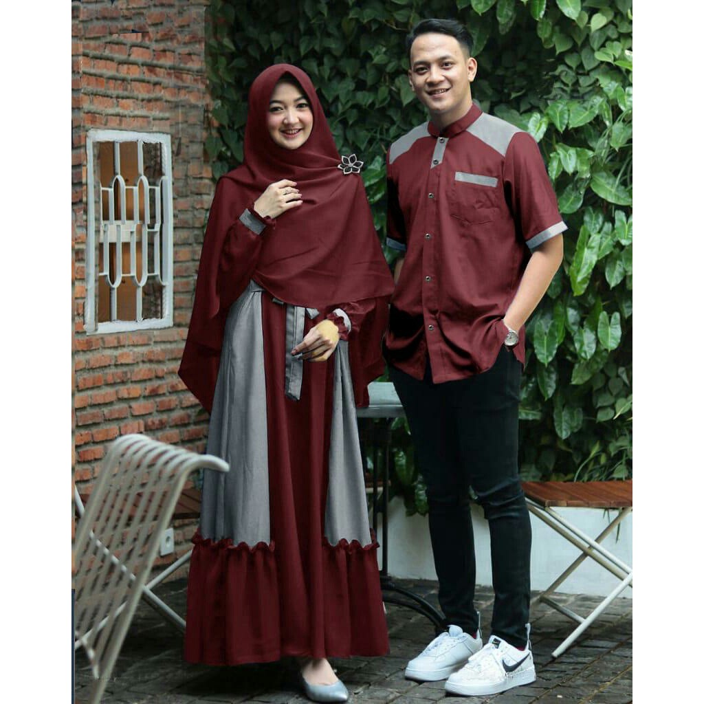 Couple Kajon & Siroy + Bergo - Couple Muslim - Baju Muslim Cewek dan Cowok Terbaru