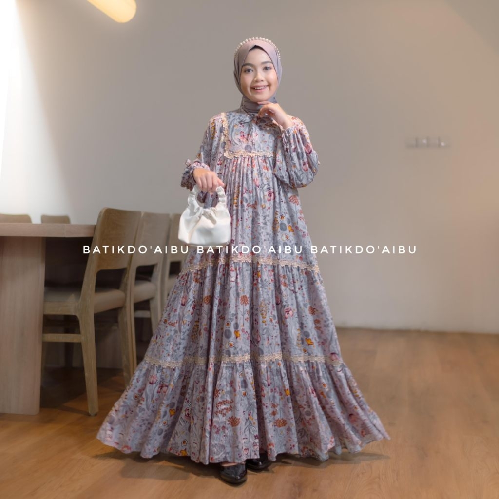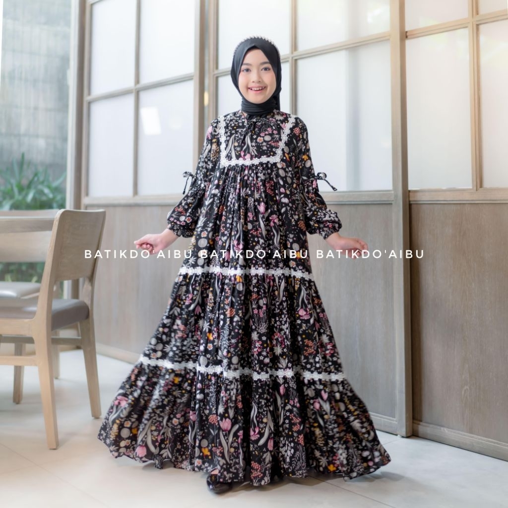 Hayvana Gamis anak Renda Dress - Gamis Rempel Renda Gamis Susun Lengan Balon Pita Gamis rayon premium