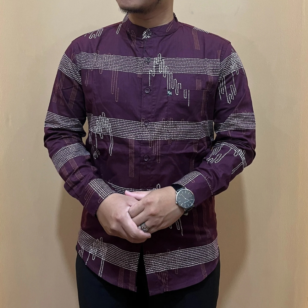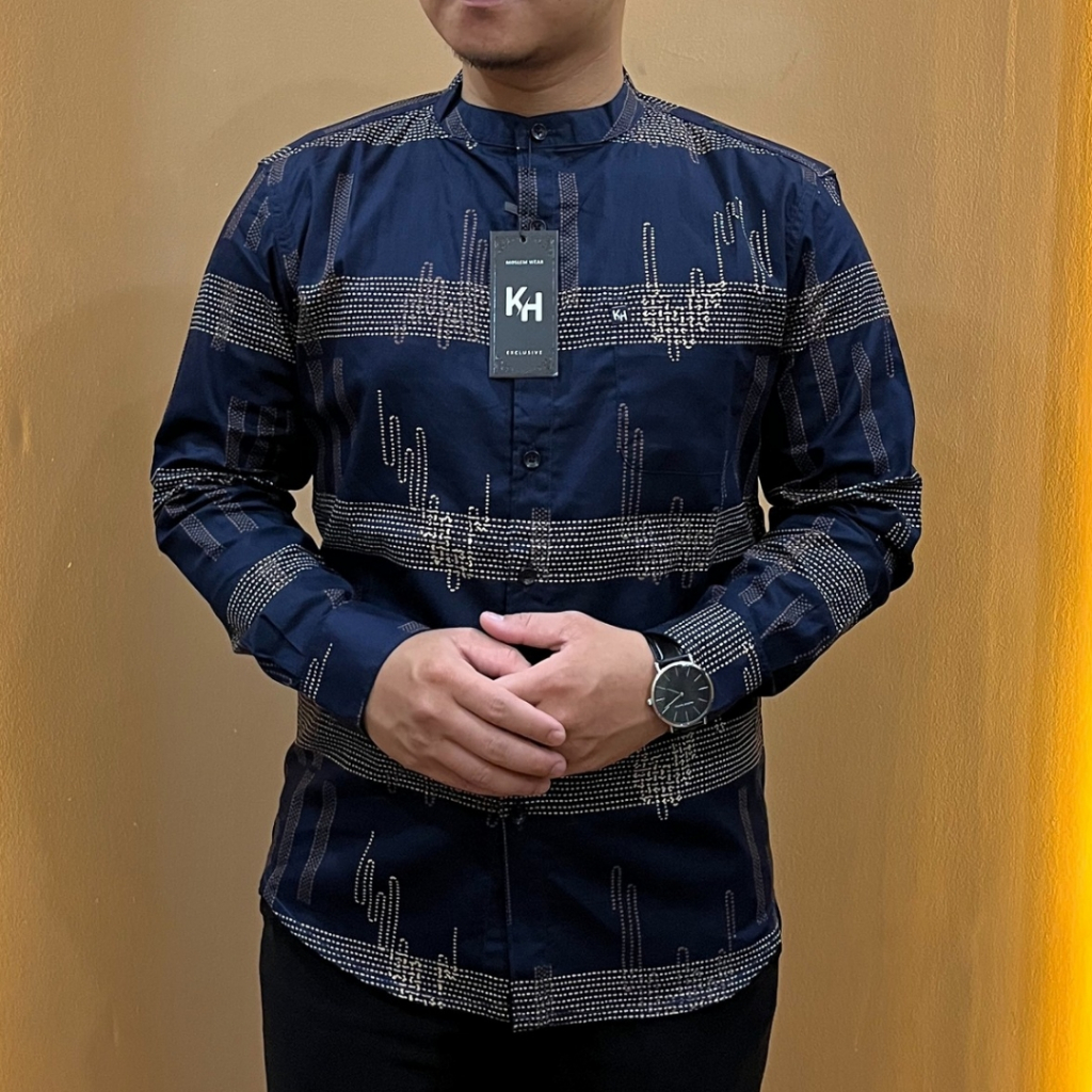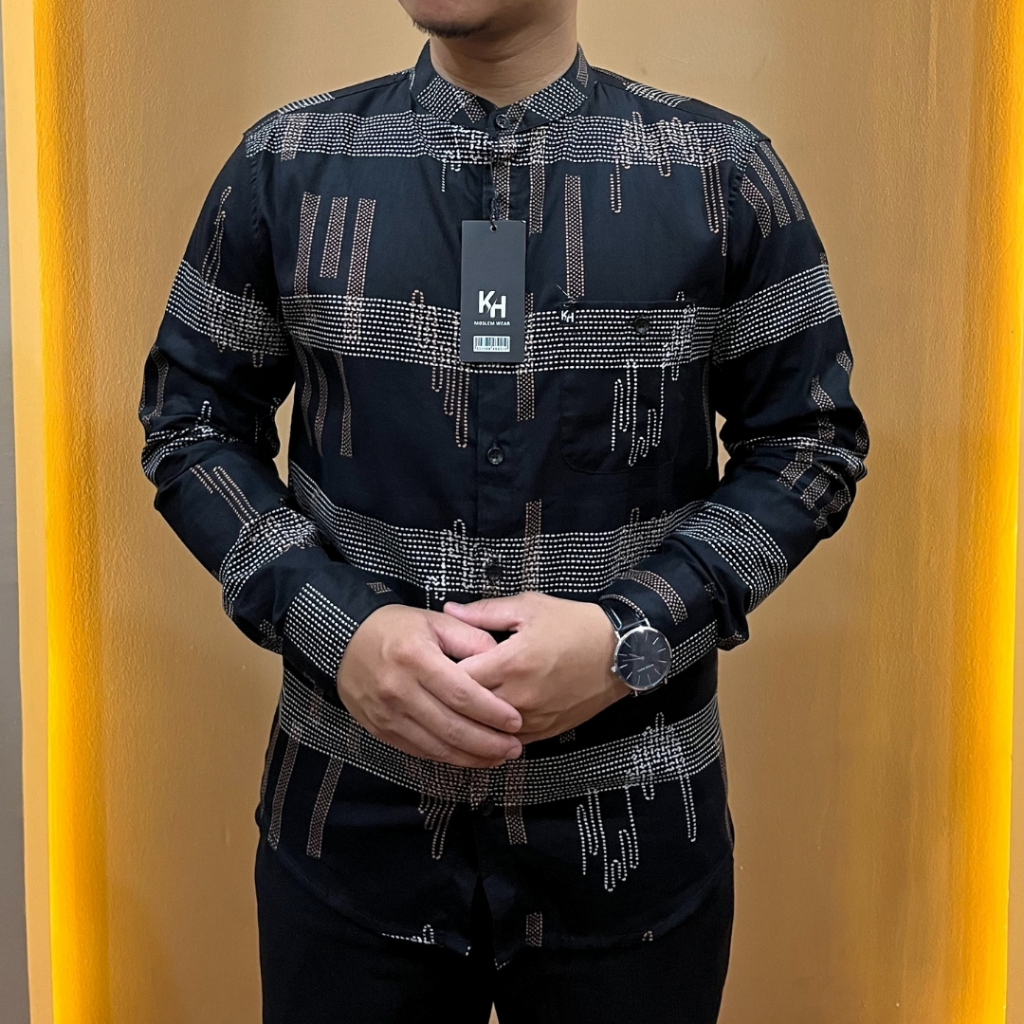 Kemeja Pria Dewasa Lengan Panjang Kerah Sanghai Motif Grafis slimfit Premium