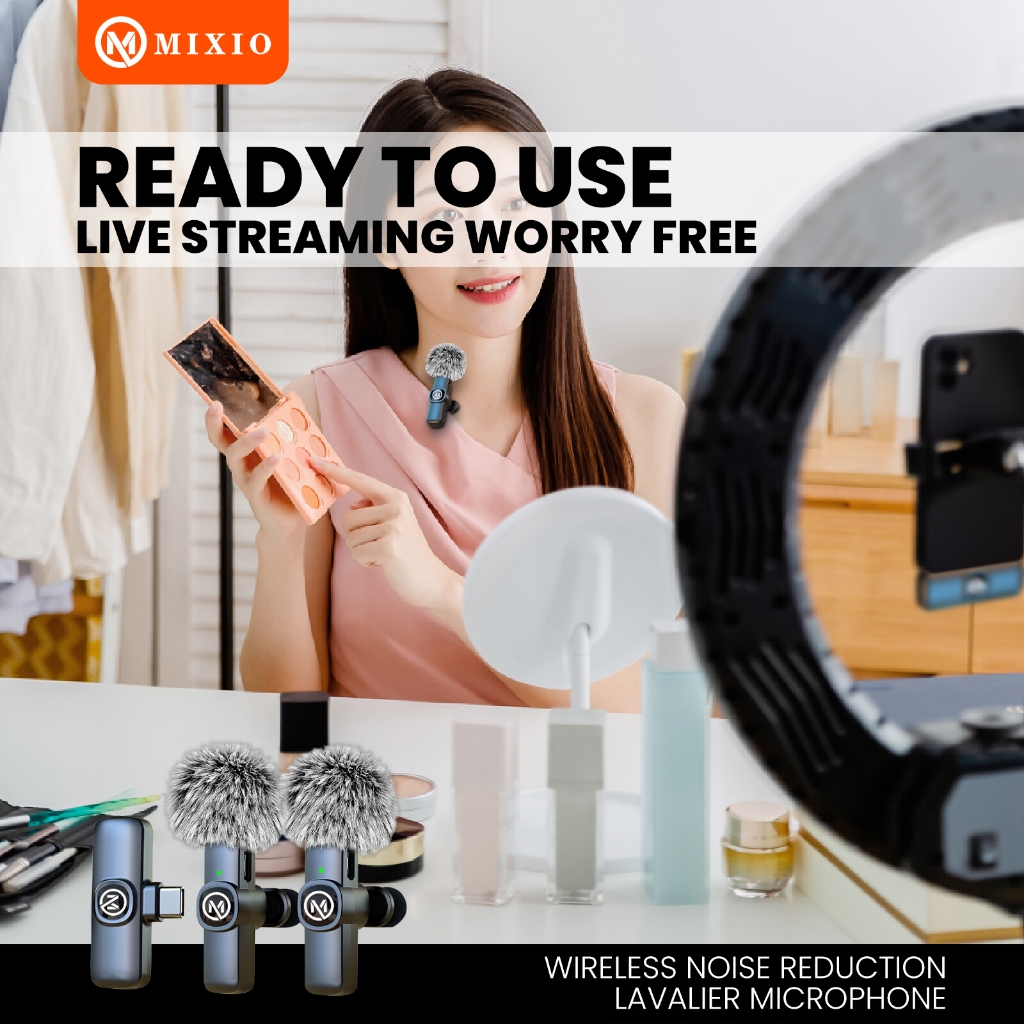 MIXIO W13 W14 Mic Wireless Clip on Microphone Mikrofon Lavalier HP Plug & Play