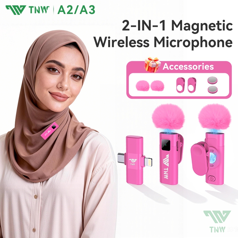 TNW A2/A3 2-In-1 Wireless Microphone Magnetic Mic Wireless Dual Lavalier Mikrofon HP Plug & Play Noise Reduction untuk Live Streaming Konten Kreator