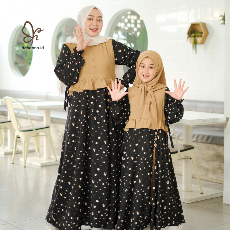 Gamis Couple Ibu dan Anak Perempuan Bahan Crinkle Motif Kombinasi Polos Terbaru