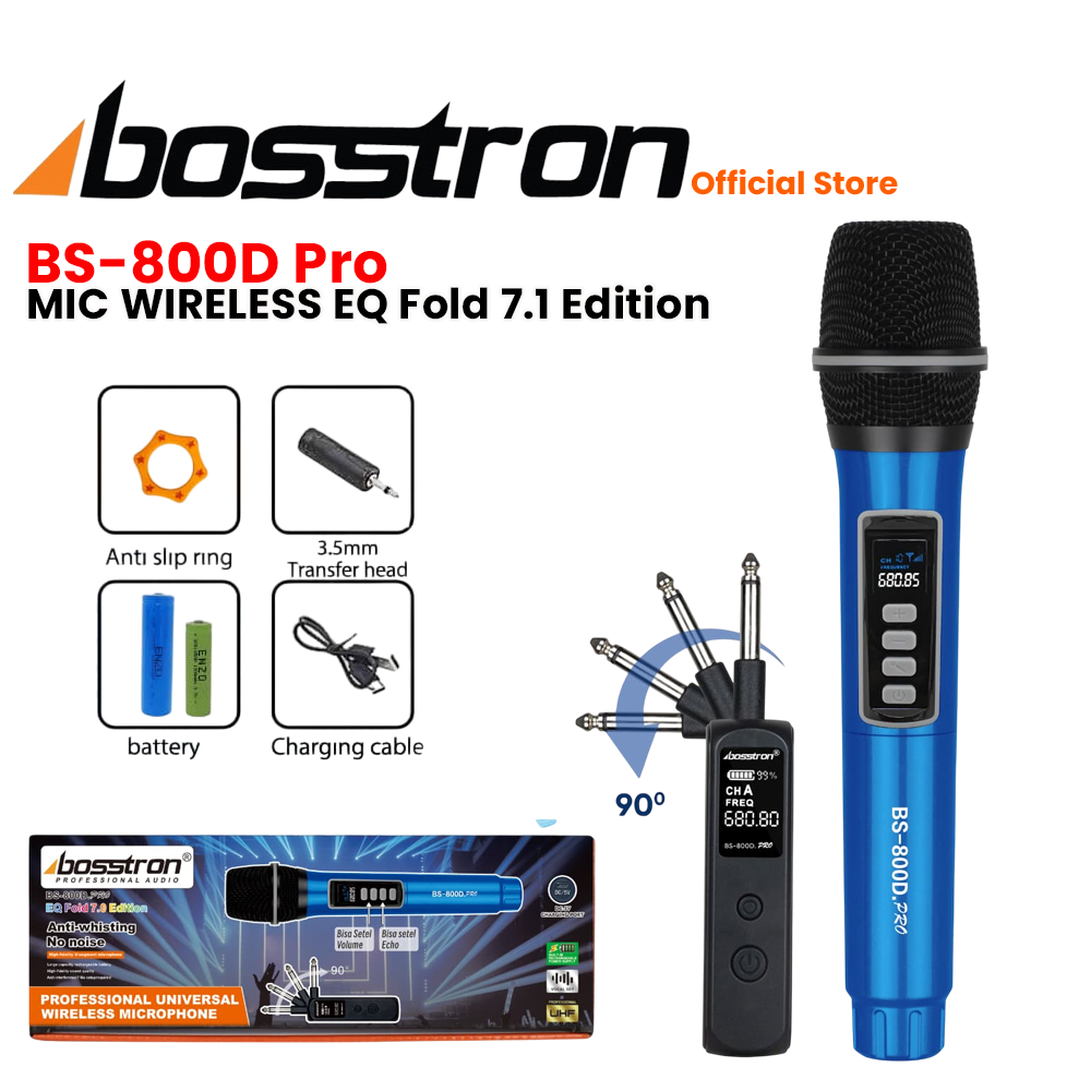 Bosstron Mic Wireless BS-800D PRO EQ Fold 7.0 Edition Mikrofon Karaoke Dengan Tombol Volume dan Echo Receiver Dilipat dan Tmbol Anti Noise