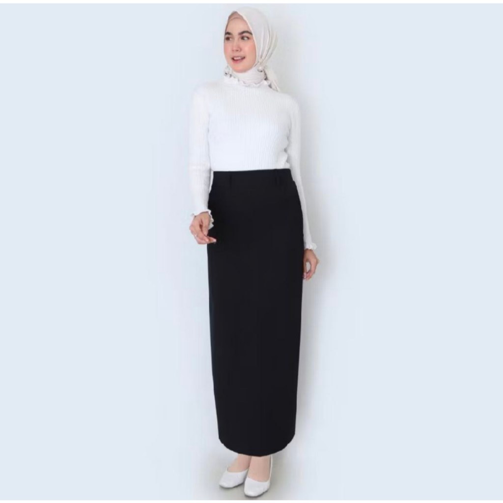 Rok Kerja Wanita Panjang Span Rempel Belakang S-L5