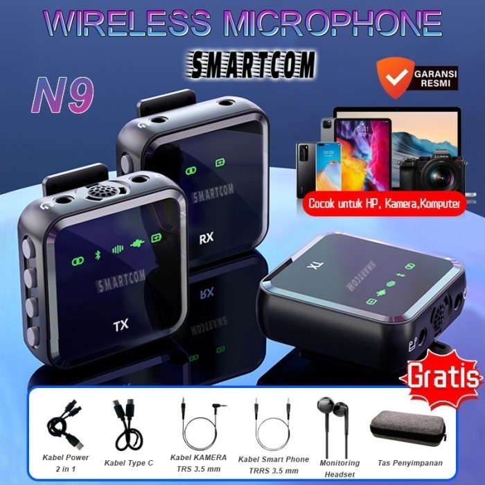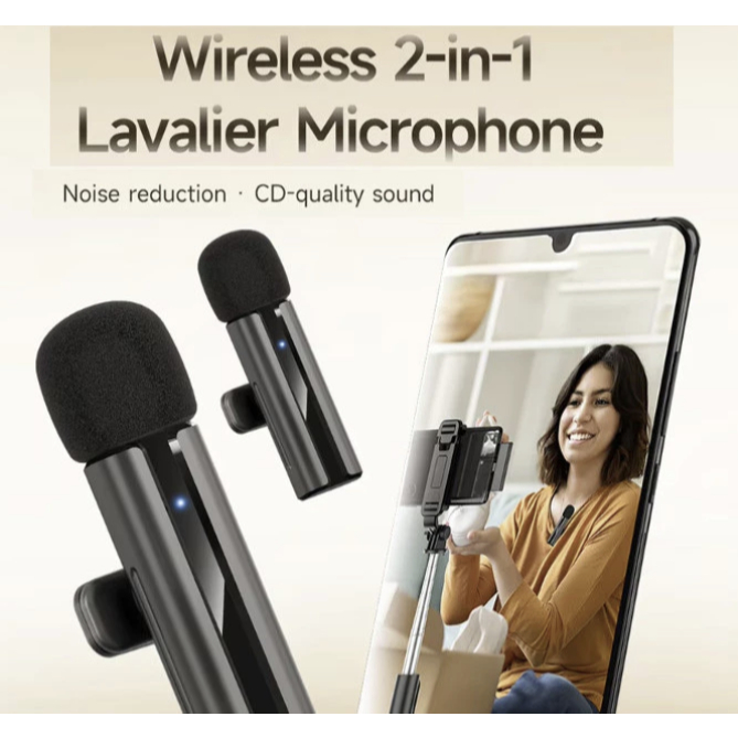 SMARTCOM - Mic Wireless Dual Lavalier Microphone Plug & Play Mic Clip On Mic Konten