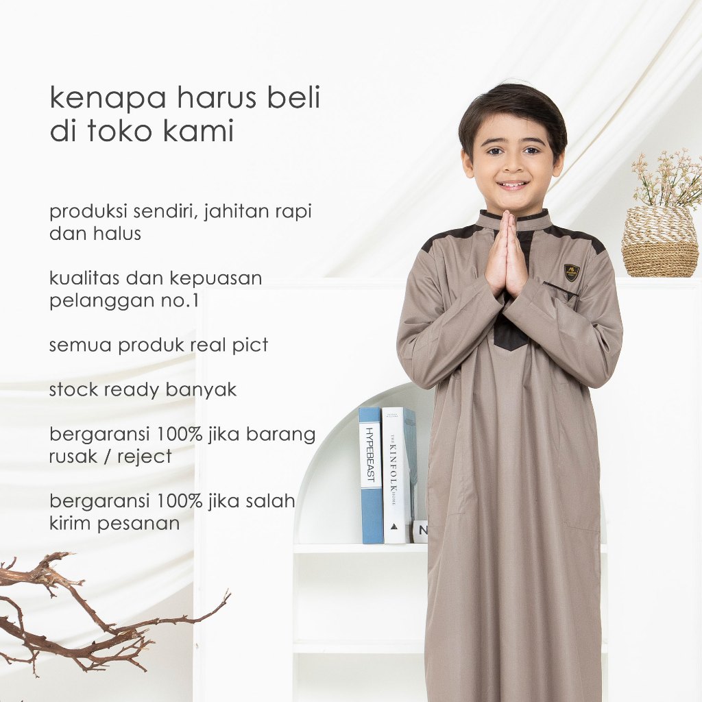 Jubah Anak Laki Laki 9 - 16 Tahun Lengan Panjang Resleting Depan Alief Series