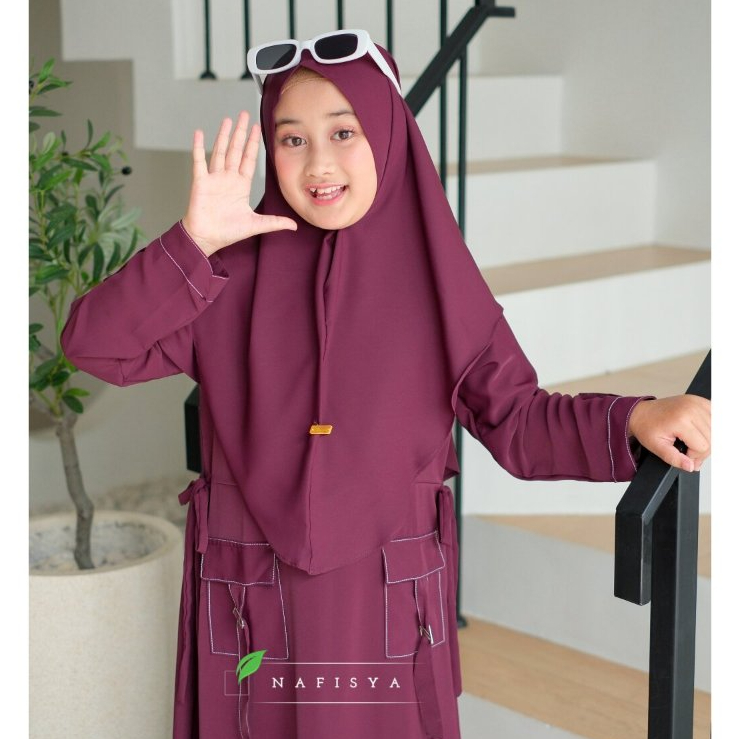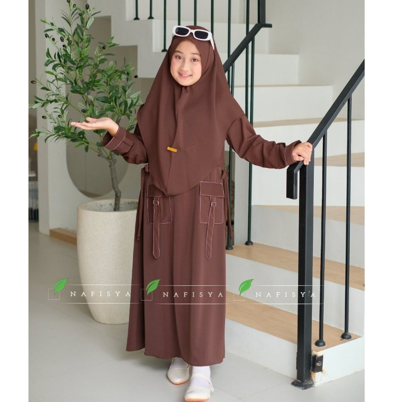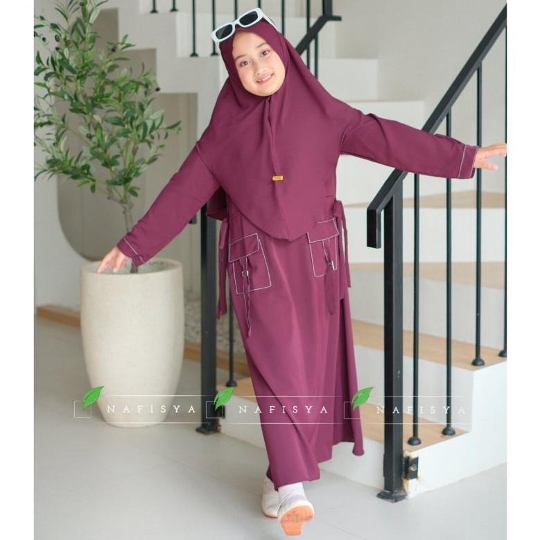 Gamis Abaya Anak Perempuasn Set Hijab Remaja Tanggung Usia 7 sampai 17 Tahun Bahan Sabrina Anti UV Lebaran 2026