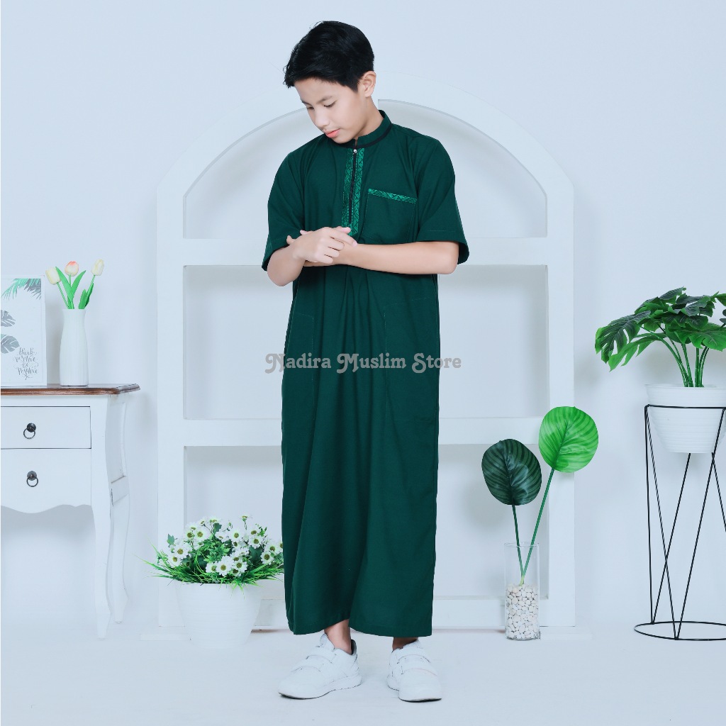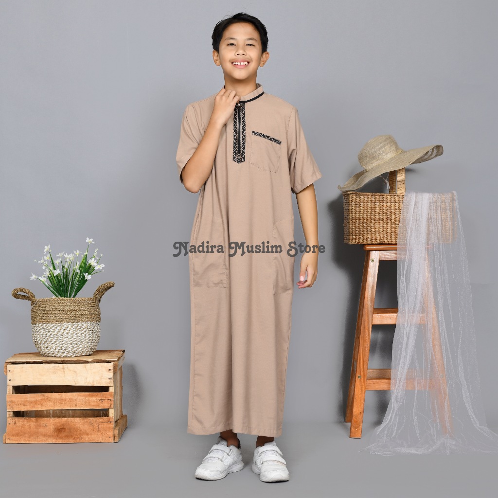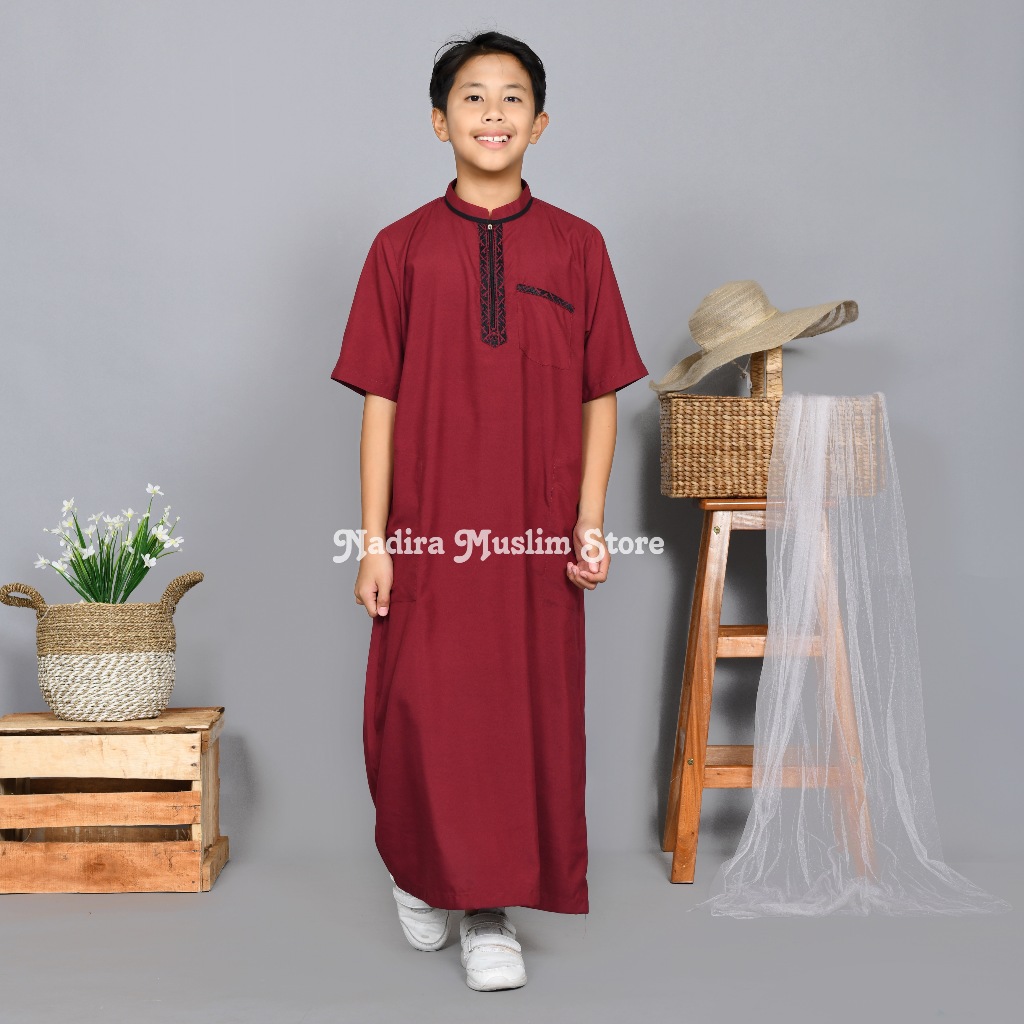 JUBAH ANAK LAKI - LAKI GAMIS LENGAN PENDEK ANAK LAKI - LAKI USIA 3 - 16 TAHUN BORDIR SIMPEL ELEGAN
