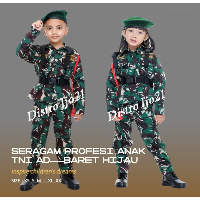 GROSIRPROFESI ANAK LISI TNI LORENG BARET HIJAU KOMPLIT FULL SET PAKE SEPATU DAHRIM KOPEL MURAH SERAGAM ANAK TNI STELAN ANAK LORENG KOSTUM CARNAVAL AGUSTUSSAN TK PAUD