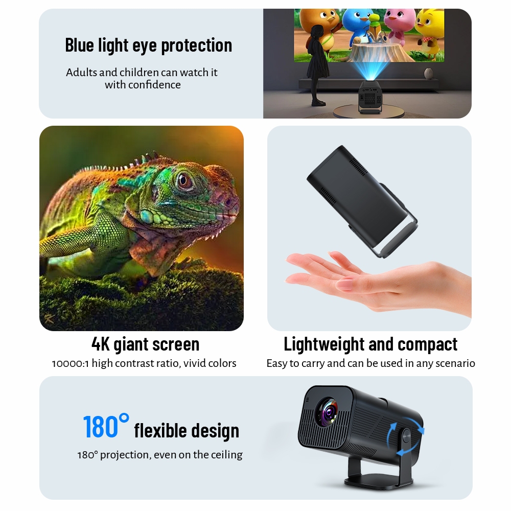 Proyektor HY320 Android 11.0 1080p 10000 Lumens WiFi 6 Bluetooth 5 Smart Proyektor HD 4K HDMI 1080P Native Projector LCD TV Asli Sistem Operasi 270 ° Proyektor yang Dapat Disesuaikan