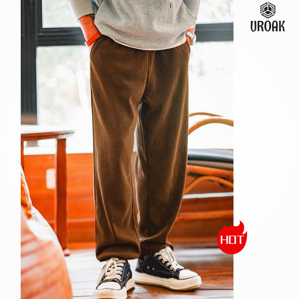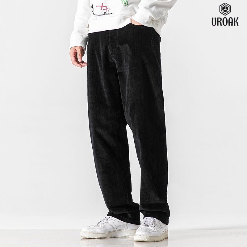 Celana corduroy pria celana corduroy longgar longgar kulot celana vintage pria fashion lurus loose pants pria celana premium cokelat/black celana Murah