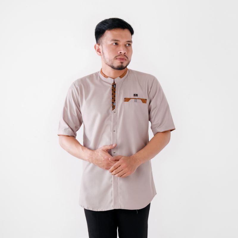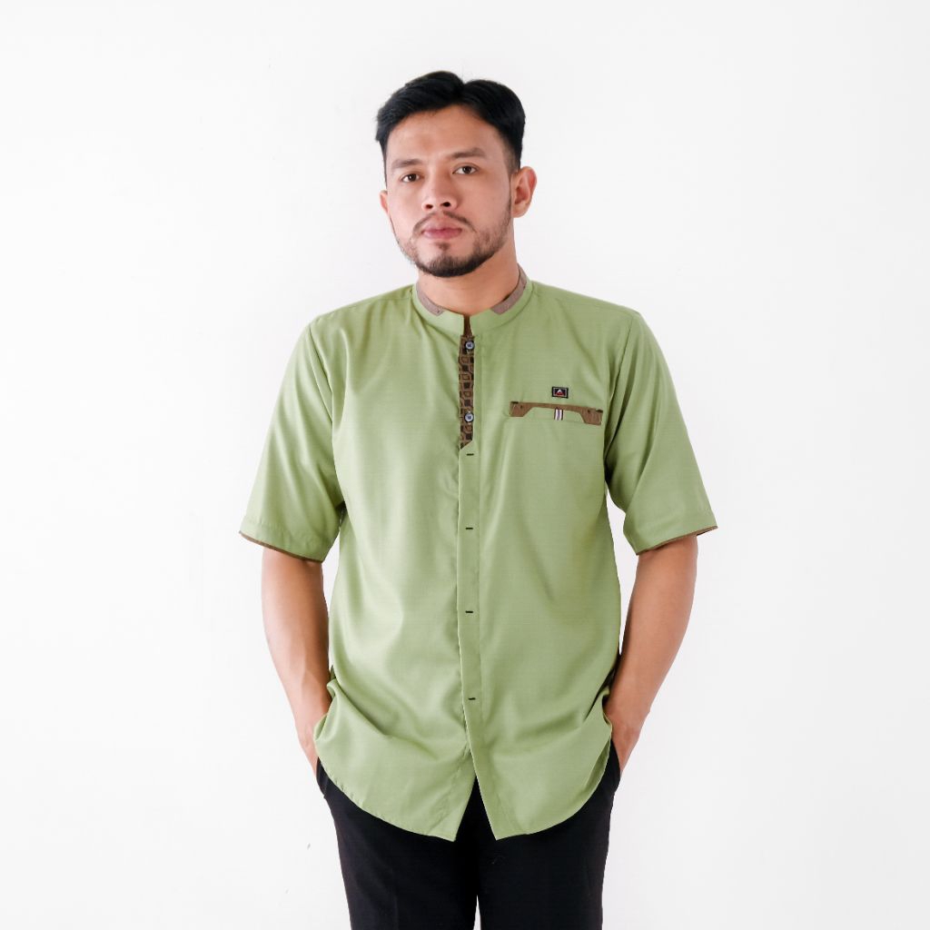 Kemeja koko Pakaian Muslim Pria Dewasa Baju Koko lengan pendek Sage gren