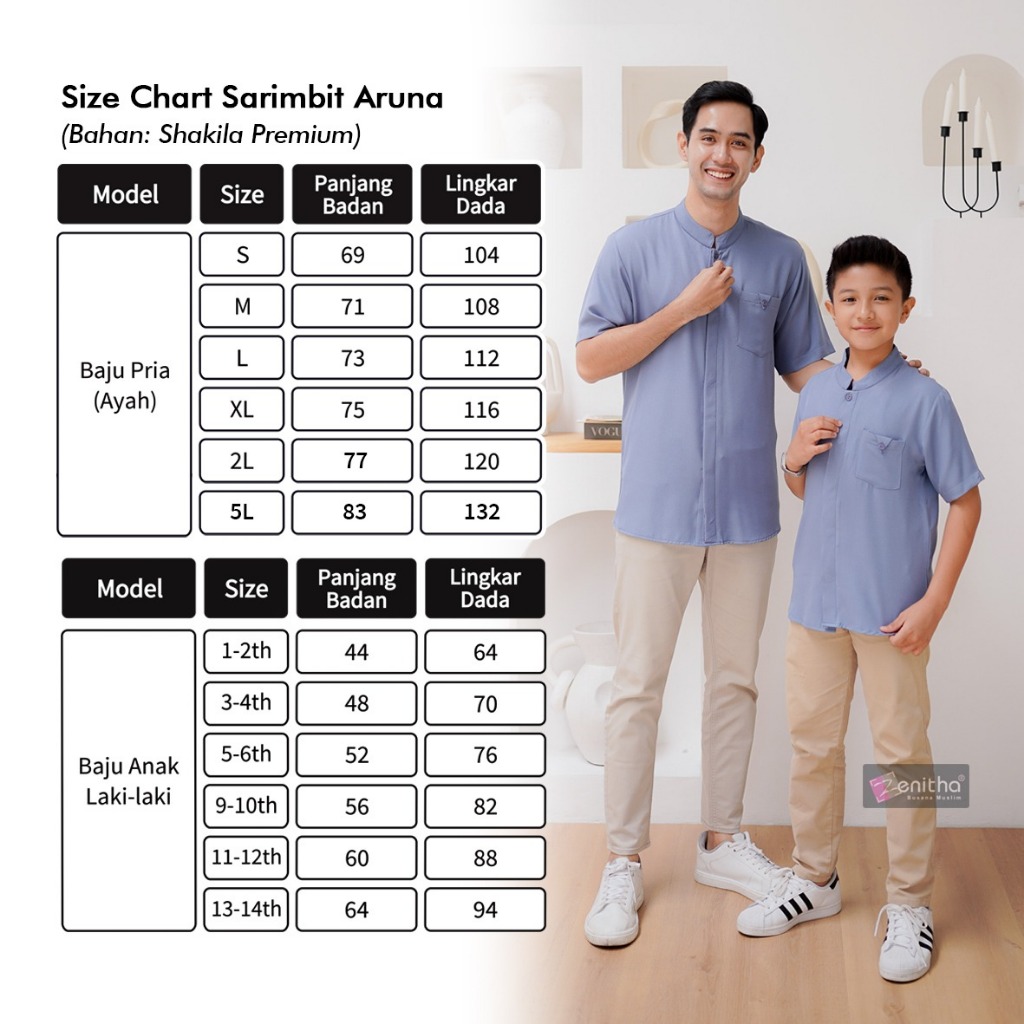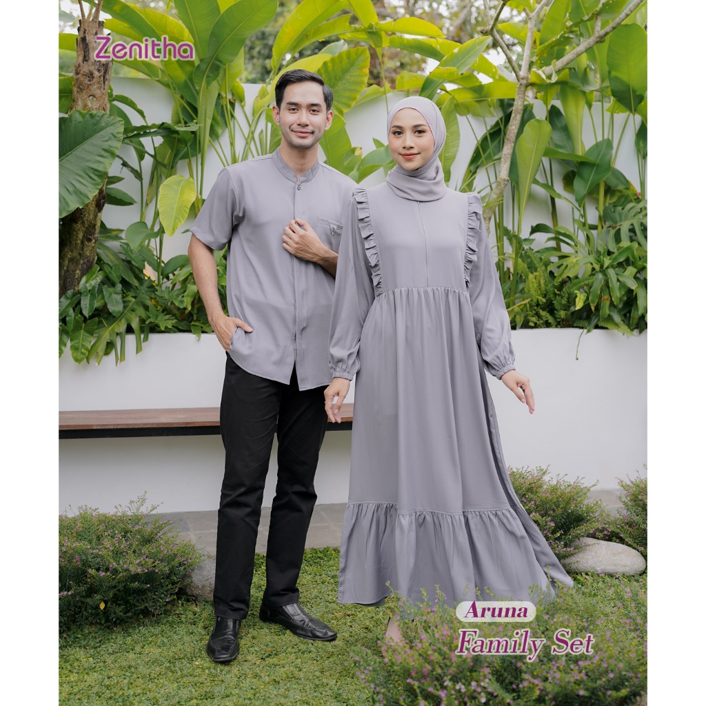 Zenitha - Aruna Denim/Abu Sarimbit Keluarga Lebaran Couple Family Set Premium