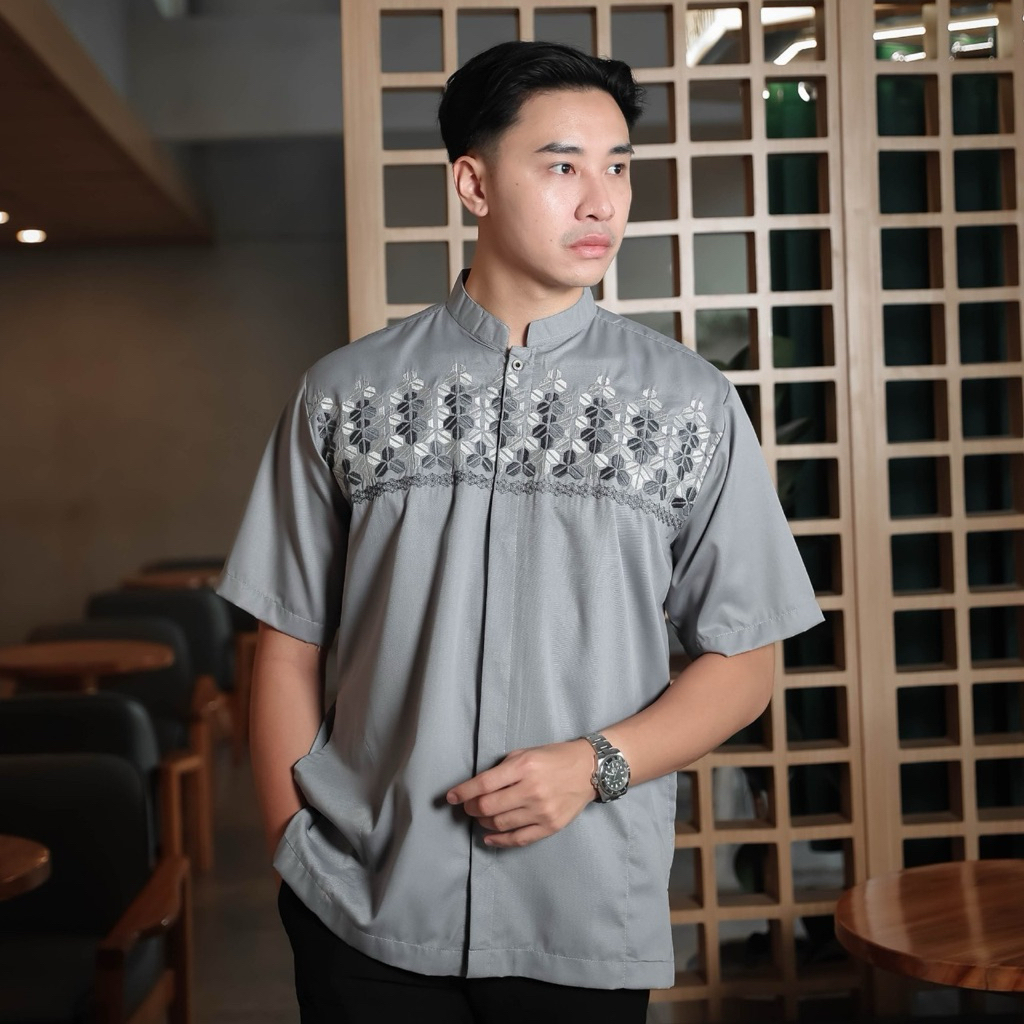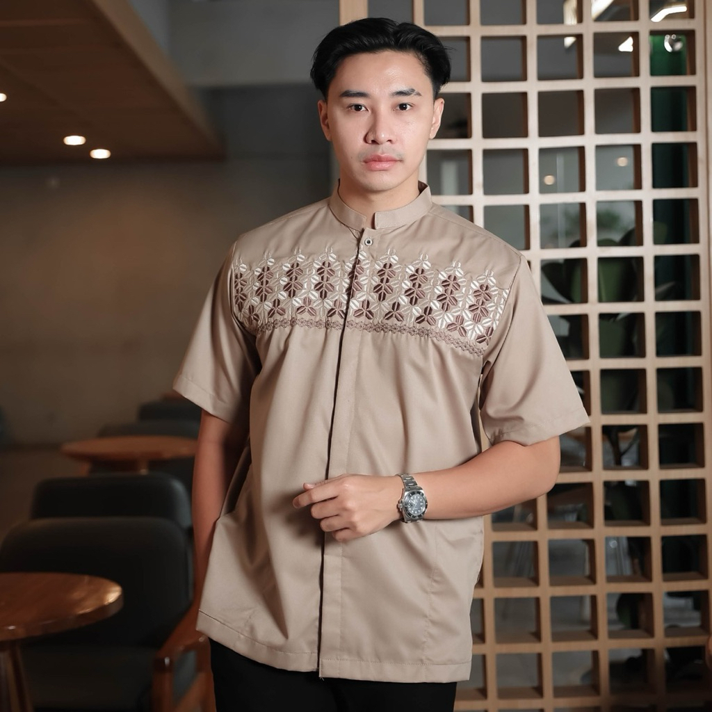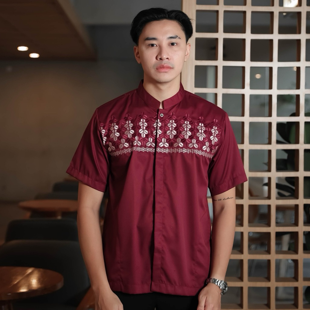 baju koko pria bordir tangan pendek katun madina warna katun AG11