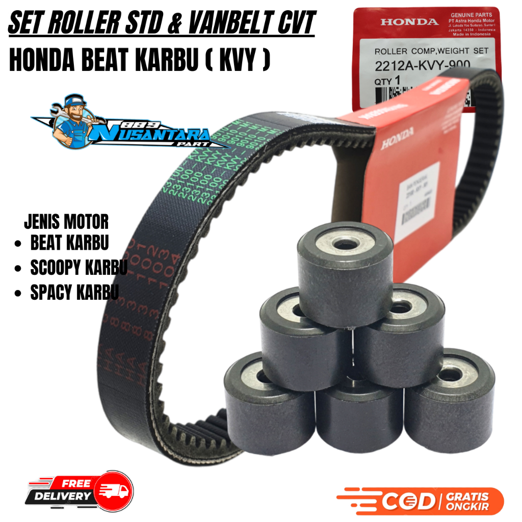 PAKET 2 ITEM KVY VANBELT ONLY BEAT + ROLLER SET 6 PCS BEAT KARBU / SCOOPY KARBU / SPACY KARBU