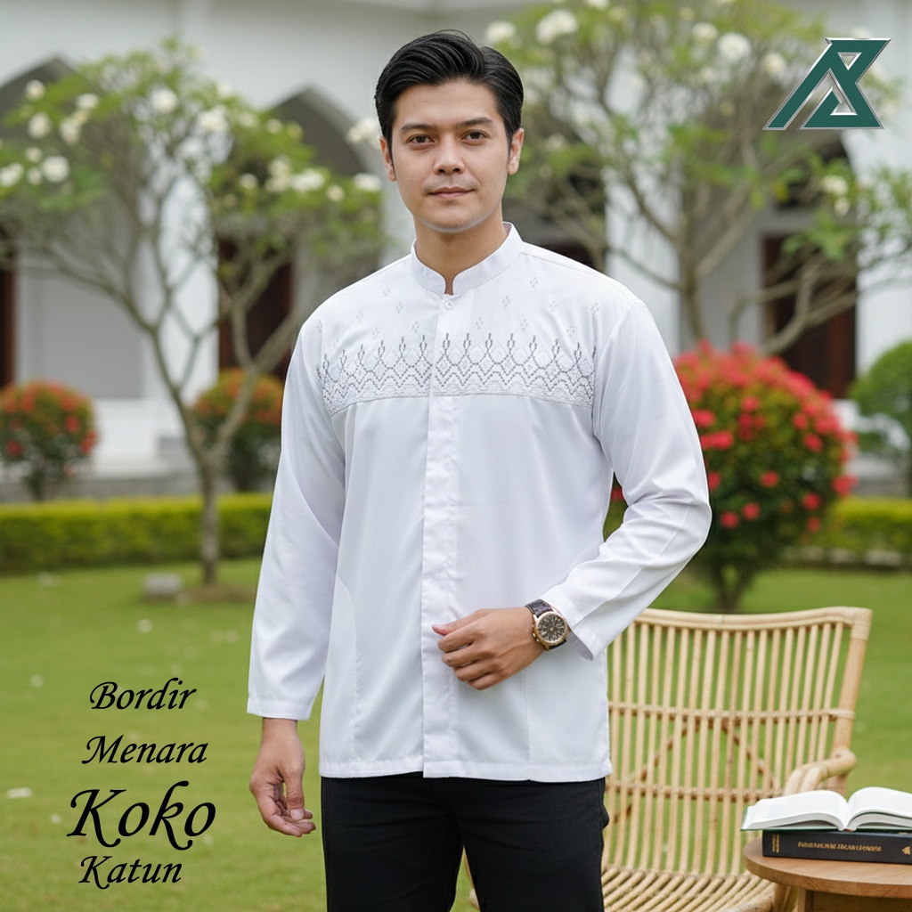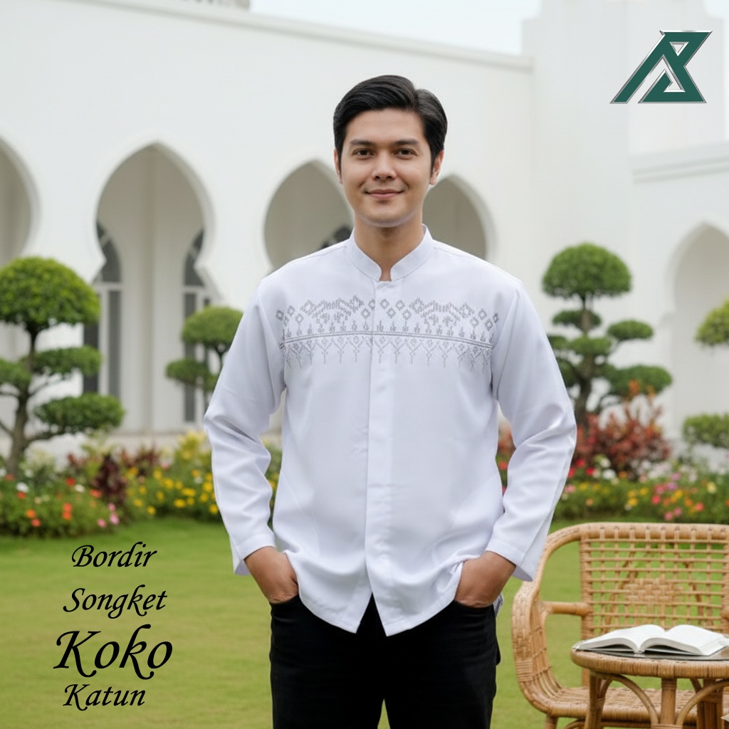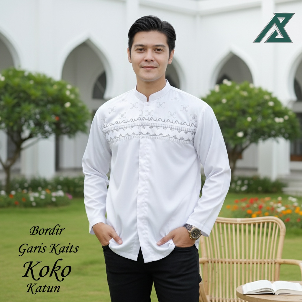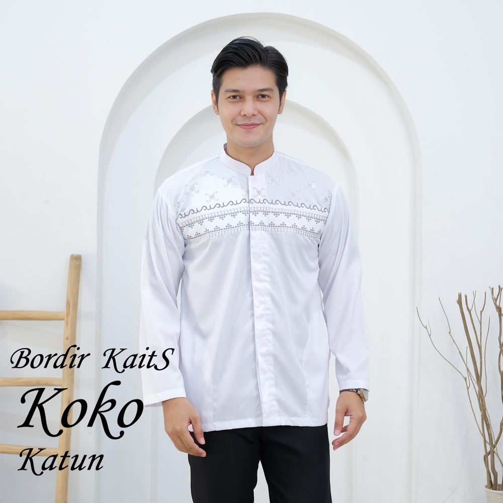 Baju Koko Pria Putih Bordir Katun Lengan Panjang Terbaru | M L XL XXL