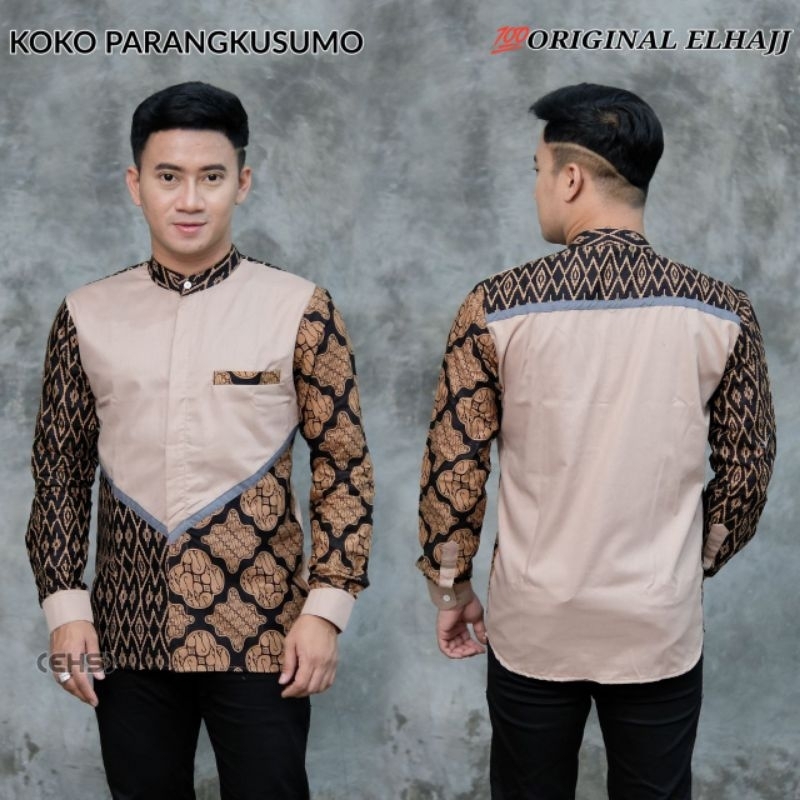 Baju Koko Pria Lengan Panjang Kombinasi Batik Parangkusumo Toyobo Premium