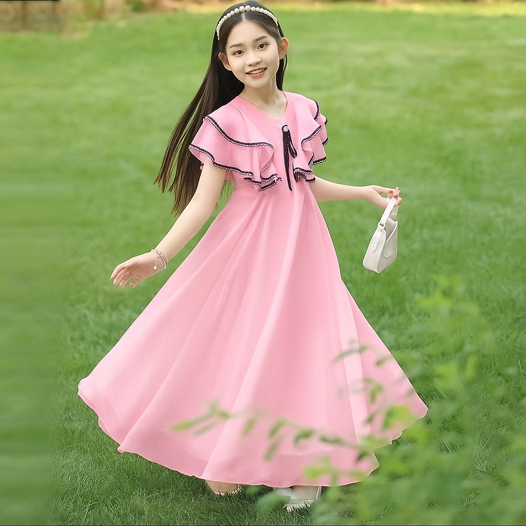 DRESS ANAK PEREMPUAN BANGKOK PRINCESS WHITE LONG PRINCESS/DRESS LEBARANTERBARU/UMUR 5-15 TAHUN/FASHION ANAK/ANAK KOREA/GAMIS ANAK/TERLARIS