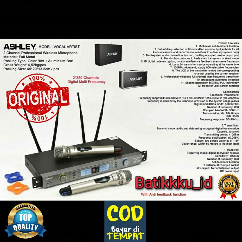 MIC WIRELESS ASHLEY VOCAL ARTIST ANTI FEEDBACK FUNCTION 2 MIC HANDHELD ORIGINAL ASHLEY FREE KOPER