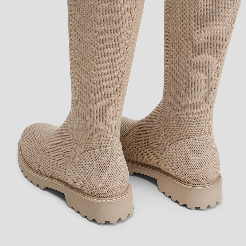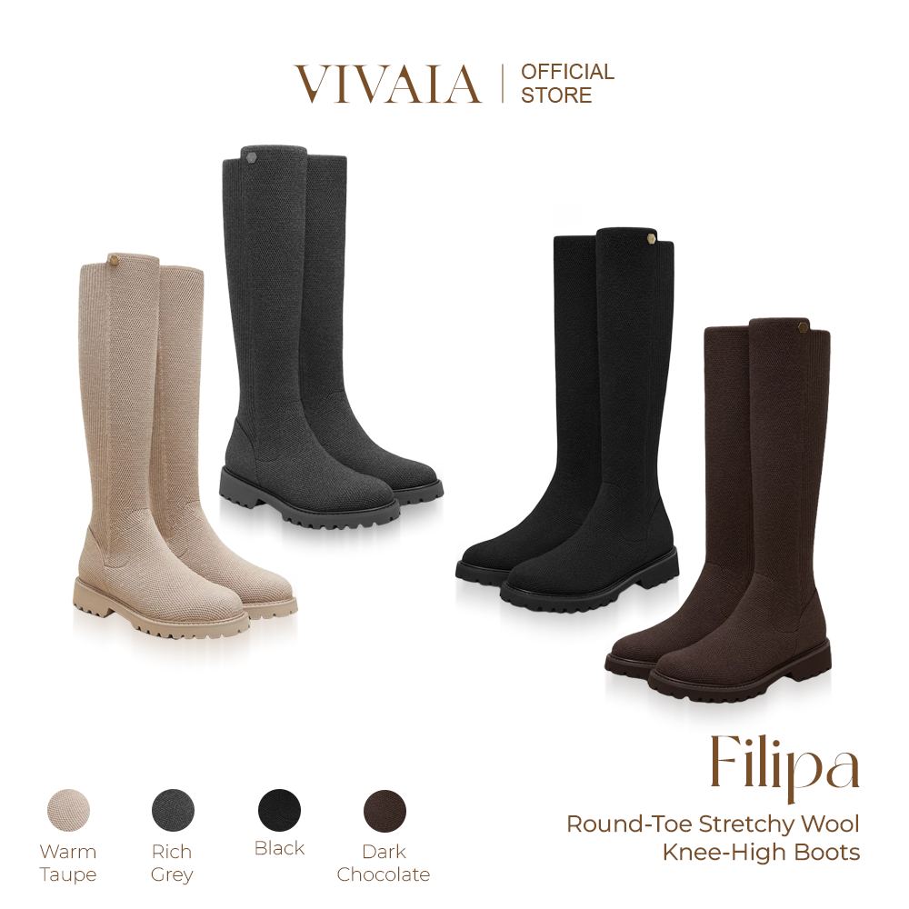 VIVAIA Sepatu Wanita Round-Toe Stretchy Wool Knee-High Boots (Filipa)
