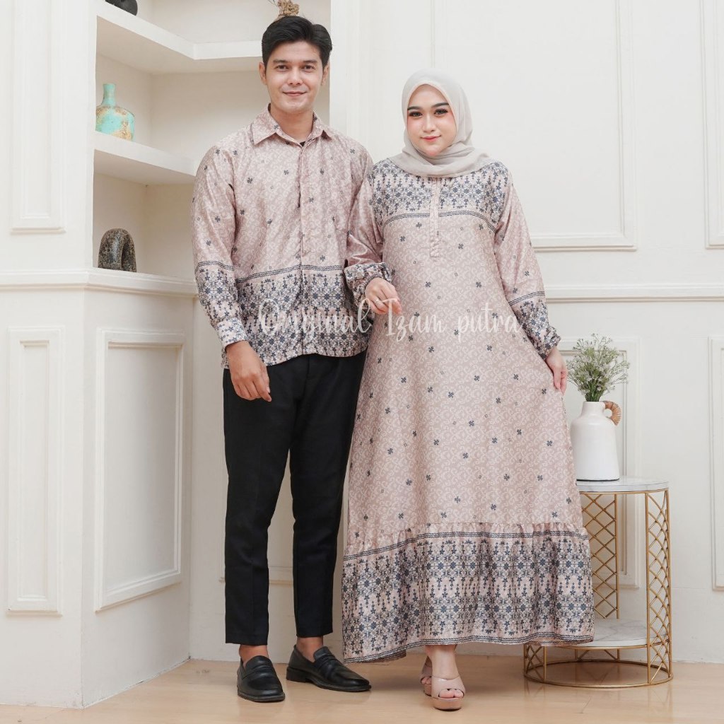 dress gamis burgundi baju couple pasangan kondangan gamis baju couple keluarga lebaran 2025