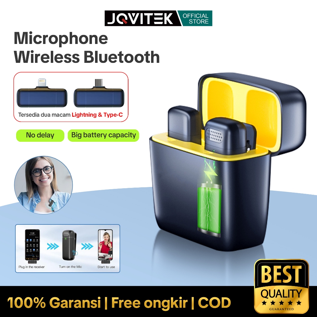 Jqvitek Wireless Microphone Magnetic Clip On Mic Lavalier Microphone HP Plug & Play Nirkabel Mikrofon with Charging Case - LM03/LM04