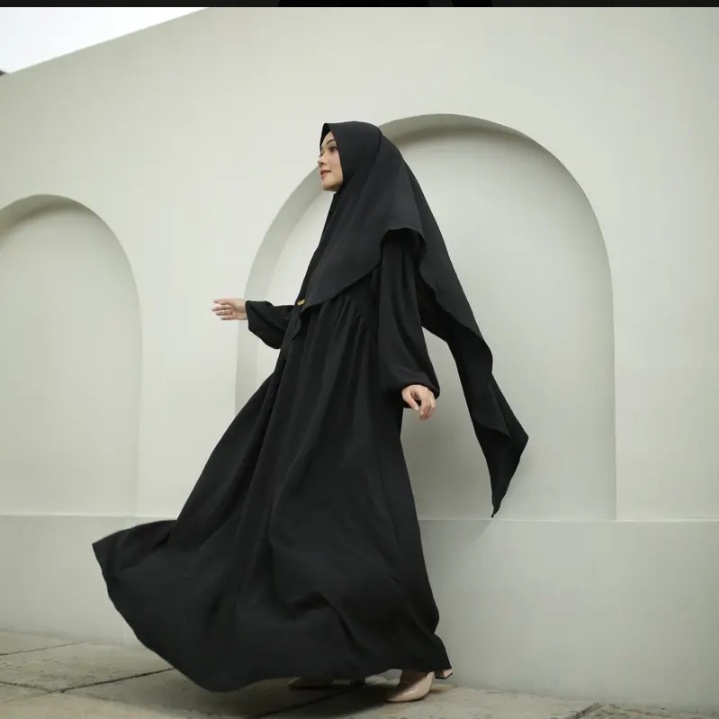 Gamis Syari Jumbo L XL XXL Crinkel Airflow Busui Resleting Depan Gamis Set Hijab Terbaru