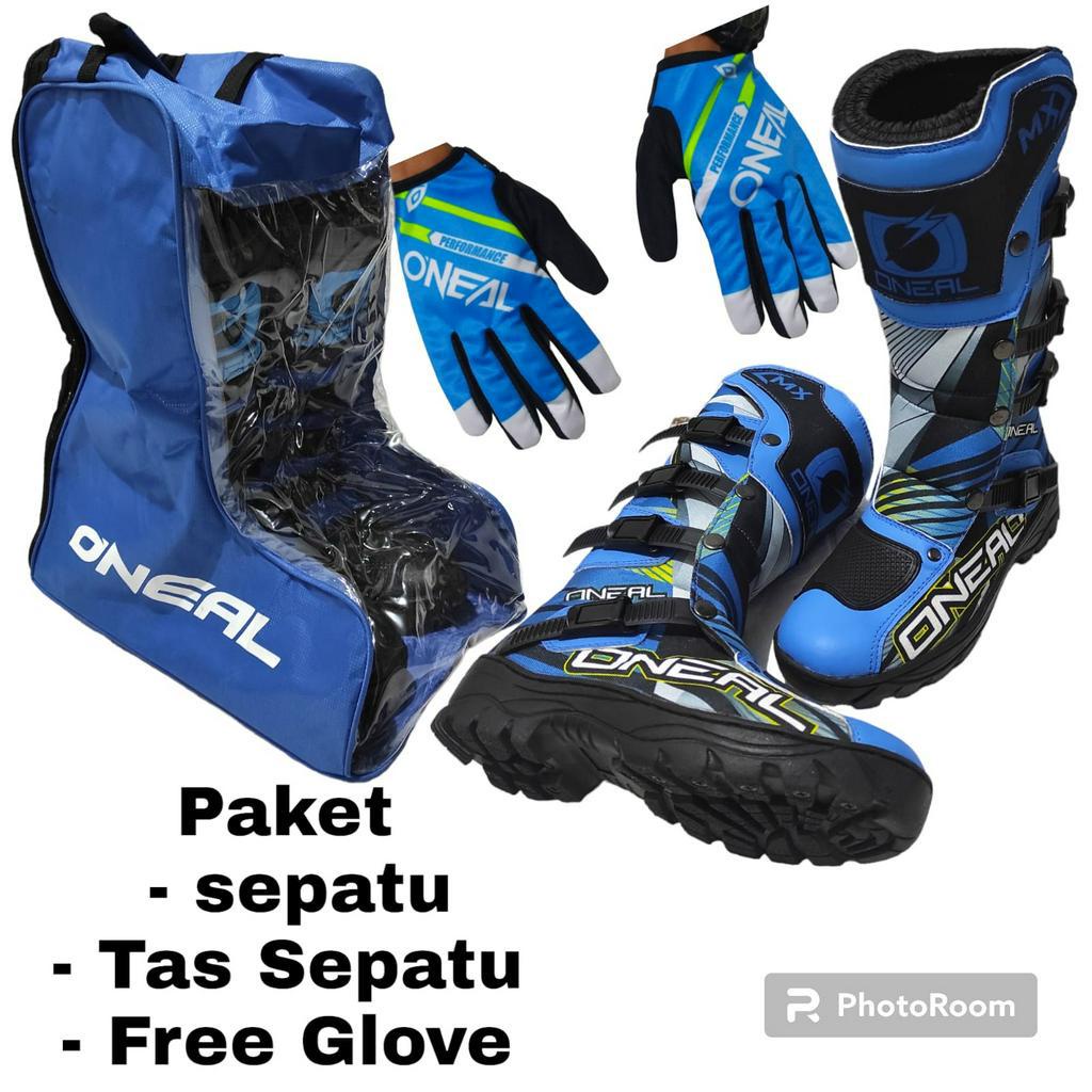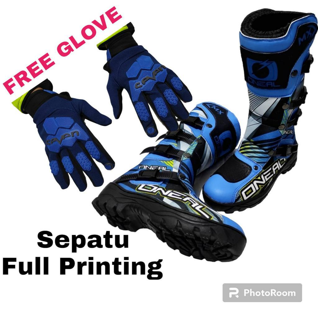 sepatu cross fullprinting plus tas FREE SARUNG TANGAN bots mx trail motor cross gastrack or enduro kualitas premium