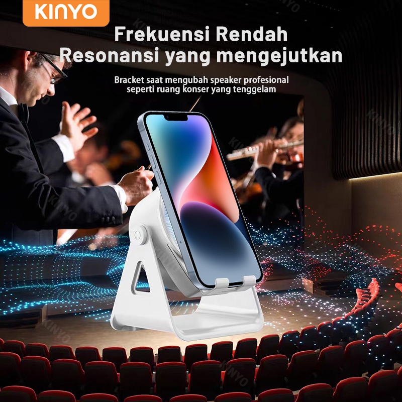 KINYO Speaker Bluetooth Pintar dengan Sensor, Dudukan Ponsel 3-in-1, Pengisi Daya Nirkabel Portabel untuk Meja, Suara Jernih dengan Bass Kuat