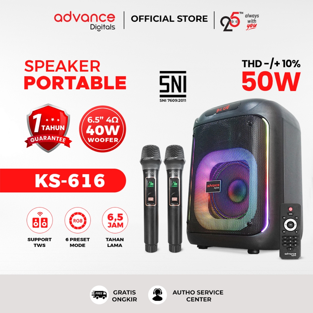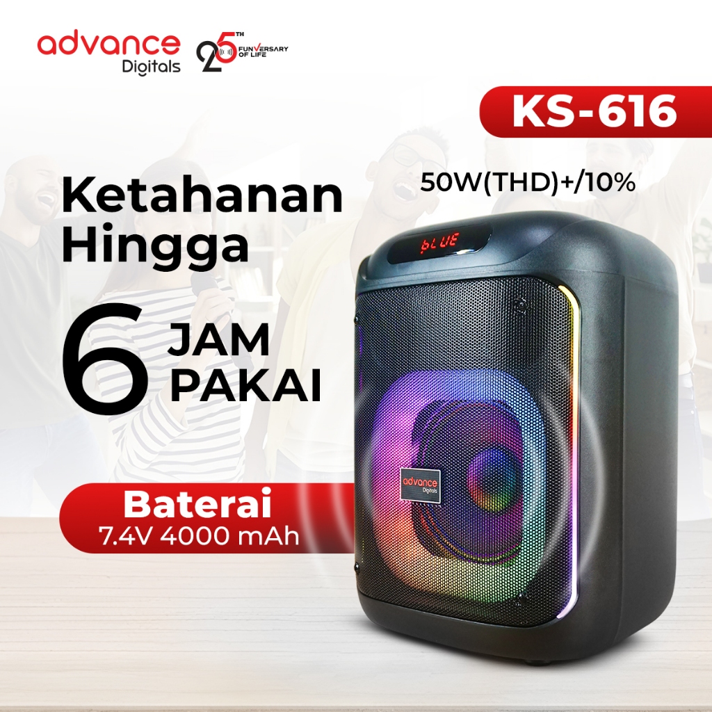 Advance KS-616 Speaker Portable Bluetooth 6,5 inch Dual Microphone Wireless Garansi Resmi 1 Tahun