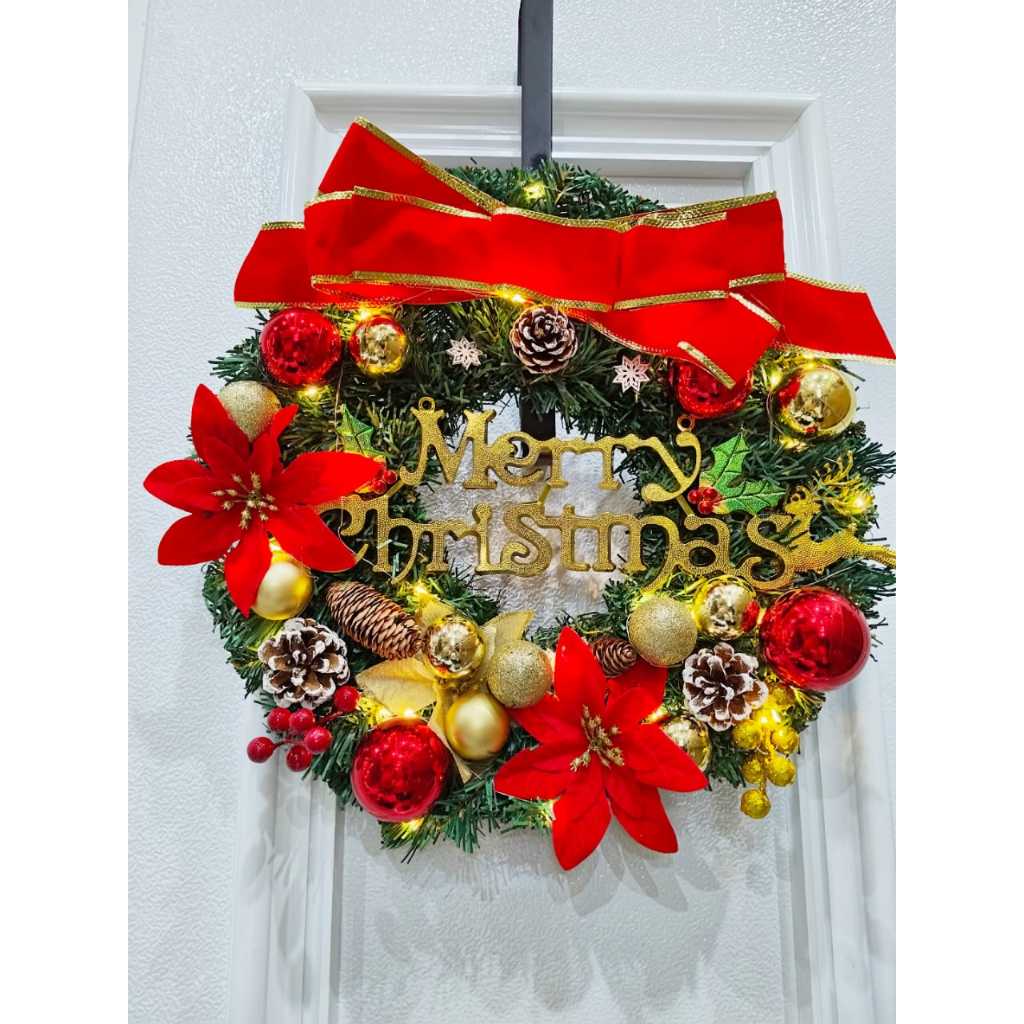40cm Karangan Bunga Natal Premium / 40cm Christmas Wreath Garland / Krans Bunga Gantungan Pintu