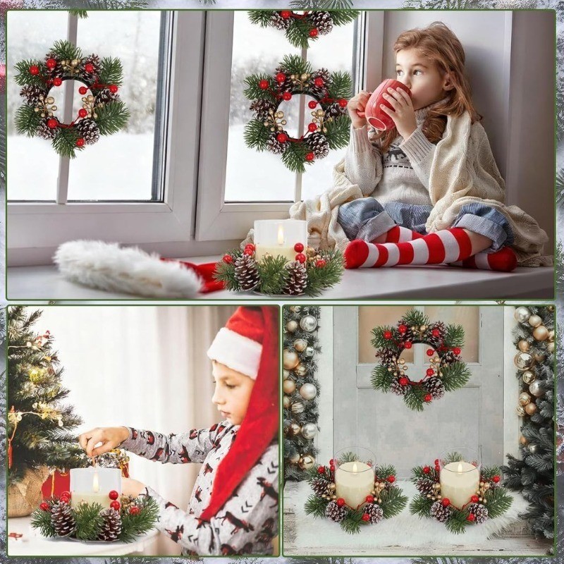 Karangan Bunga Natal / Karangan Lilin Natal Dekorasi Lilin Natal / Ornament Hiasan Natal / Hadiah Dekorasi Natal Kreatif