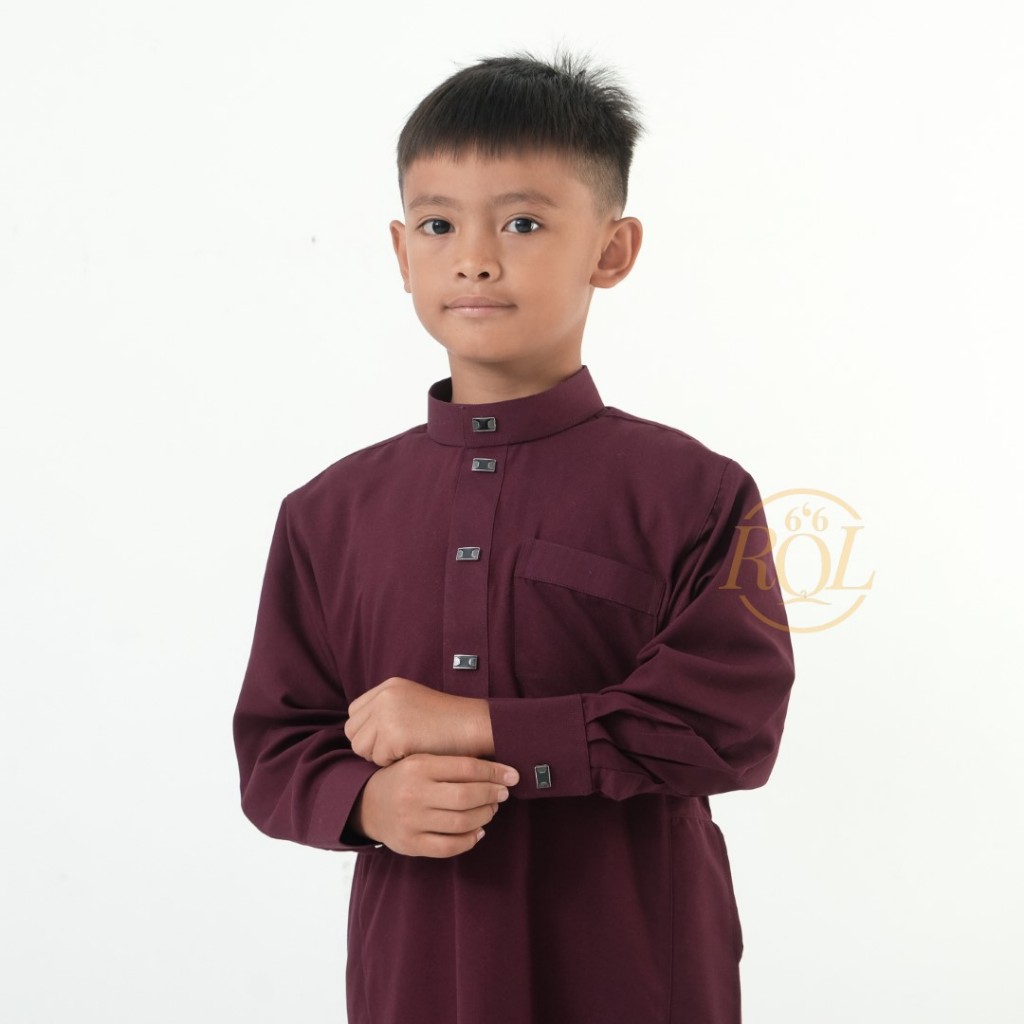 Jubah KAREEM Burgundy Anak Laki Laki usia 4 - 12 tahun Bahan Polymicro | Baju Gamis Jubah Pakaian Muslim Anak Laki Laki Lengan Panjang Kancing Manset | Baju Shalat Lebaran Pengajian Jum'atan