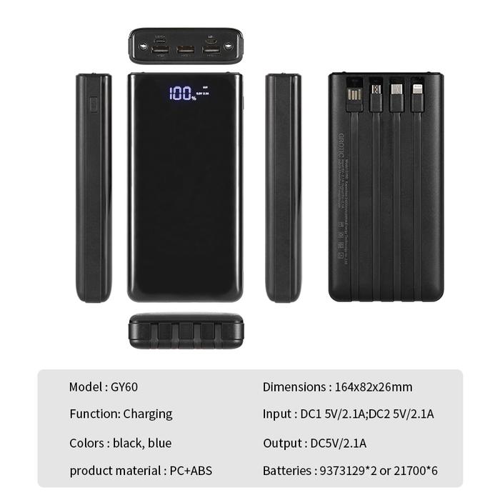 PowerBank FREE GIFT GROTIC Powerbank 24000mAh 6 Output 3 Input with LED Display GY60 - Biru