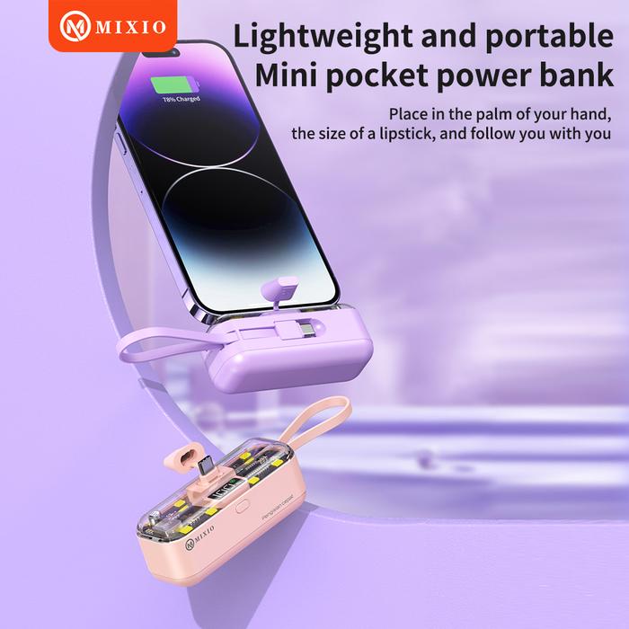 PowerBank MIXIO MP-04 Powerbank 5000mAh Portable Mini Transparan Lightning ios Type C PD Fast Charging With LED -