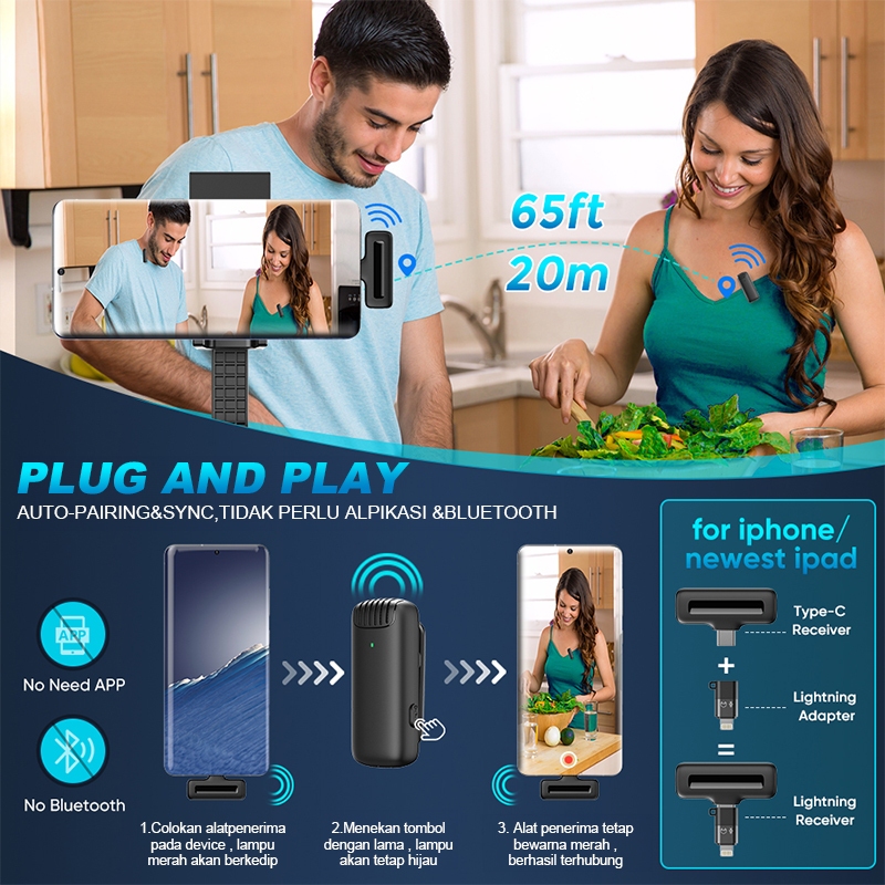 Upcam Microphone Wireless Nirkabel Lavalier Dual Wireless Bluetooth Mic Clip On Wireless Microphone
