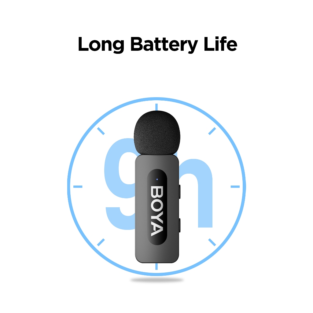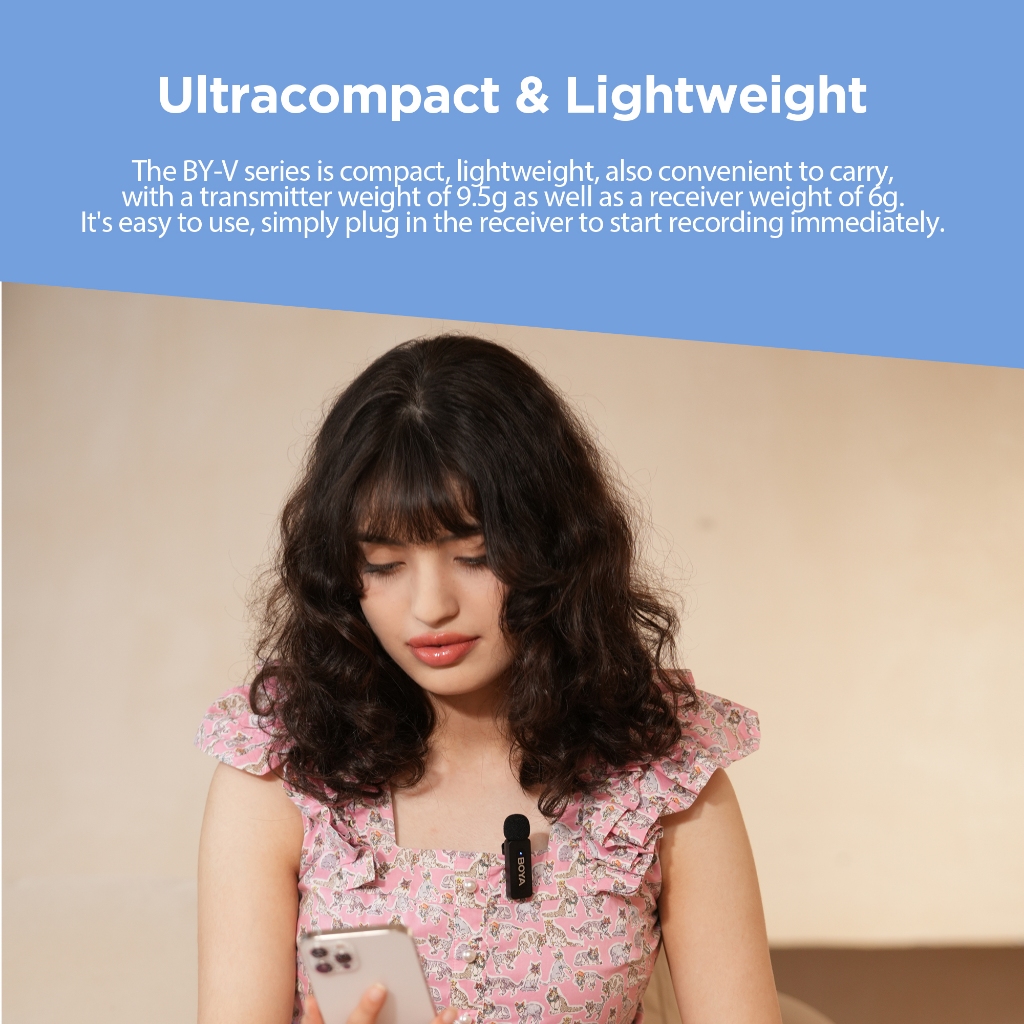 BOYA BY-V1/V2 BY-V10/V20 BY-V4/V4U/V4D Sistem Mikrofon Clip On Nirkabel Ultracompact 2.4GHz Wireless Microphone dengan Port Lightning iOS untuk Siaran Langsung Ponsel Pintar