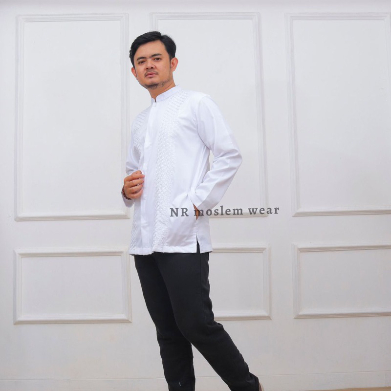 BAJU KOKO PUTIH PREMIUM , BAJU KOKO PUTIH LENGAN PANJANG PERLENGKAPAN HAJI UMROH ARK-16